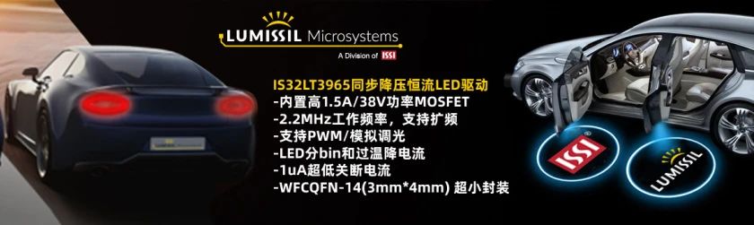 新品發布 | LUMISSIL推出車規級同步降壓恒流LED驅動芯片IS32LT3965,2.2MHz工作頻率,小封裝