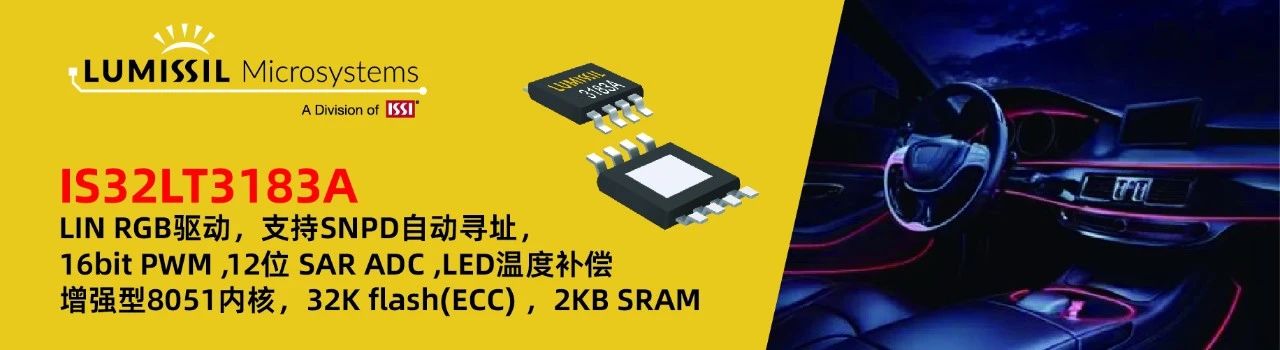 Lumissil發布了最新車規級LIN RGB氛圍燈驅動芯片IS32LT3183A。該芯片是一款高度集成單芯片智能氛圍燈驅動芯片,集成了電源管理、LIN總線收發器、增強型8051 ?MCU微控制器、內嵌 32KB flash和2KB SRAM于同一芯片上,是真正的片上單芯片系統(SOC)。